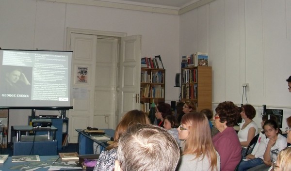 ziua internationala a muziciiO oportunitate pentru cei prezenti de a accede universul enescian prin preferintele personale: "Oedip", "Vocile stepei", Fuga din Suita pentru pian op.3, un prilej de a rasfoi carti, albume si partituri cu si despre George Enescu, din fondul de carte al Bibliotecii Judetene "Mihai Eminescu", in cadrul "Bibliotecii vii" organizate de Ziua Internationala a Muzicii.